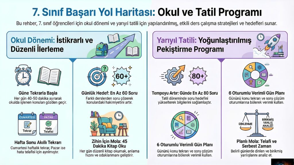 7.Sınıfa geçtin, nasıl çalışmalısın? Seni neler bekliyor bilmiyor olabilirsin. Ya da aileden senden önce bu süreci yaşamış bir kardeşin vardı. Her ihtimale karşı senin için aşağıdaki görseli hazırladık. SS alabilir ya da burdan notlar çıkarabilirsin. Hepsi senin için.